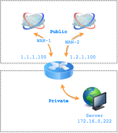 | /ip firewall nat add action=dst-nat chain=dstnat dst-address=1.1.1.100 dst-port=80 \ protocol=tcp to-addresses=172.16.0.222 to-ports=80 add action=dst-nat chain=dstnat dst-address=1.2.1.100 dst-port=80 \ protocol=tcp to-addresses=172.16.0.222 to-ports=80